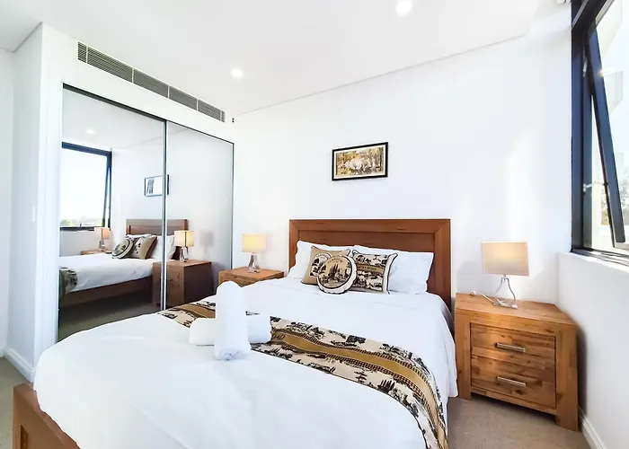 Cet appartement Relaxing 1Br W Pools & Spa, Gym In Olympic Park Cité de Cité de Sydney de 52 m² est situé à seulement 1 km du Stade de football Sydney Showground Stadium et à moins de 8 minutes à pied d'Aquatic Centre. Bénéficiant d'un emplacement assez proche de Lake Belvedere, la résidence offre à ses clients une piscine couverte.